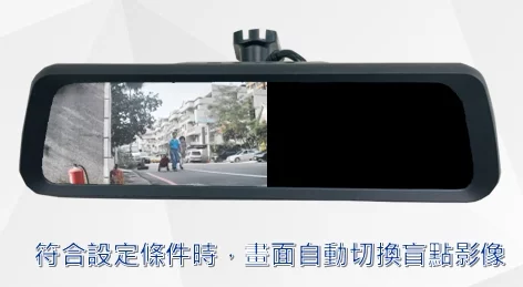 - The product normally displays the rear camera view. Depending on the driving situation, it instantly switches to display and record the reversing camera view or the front side blind spot camera view.